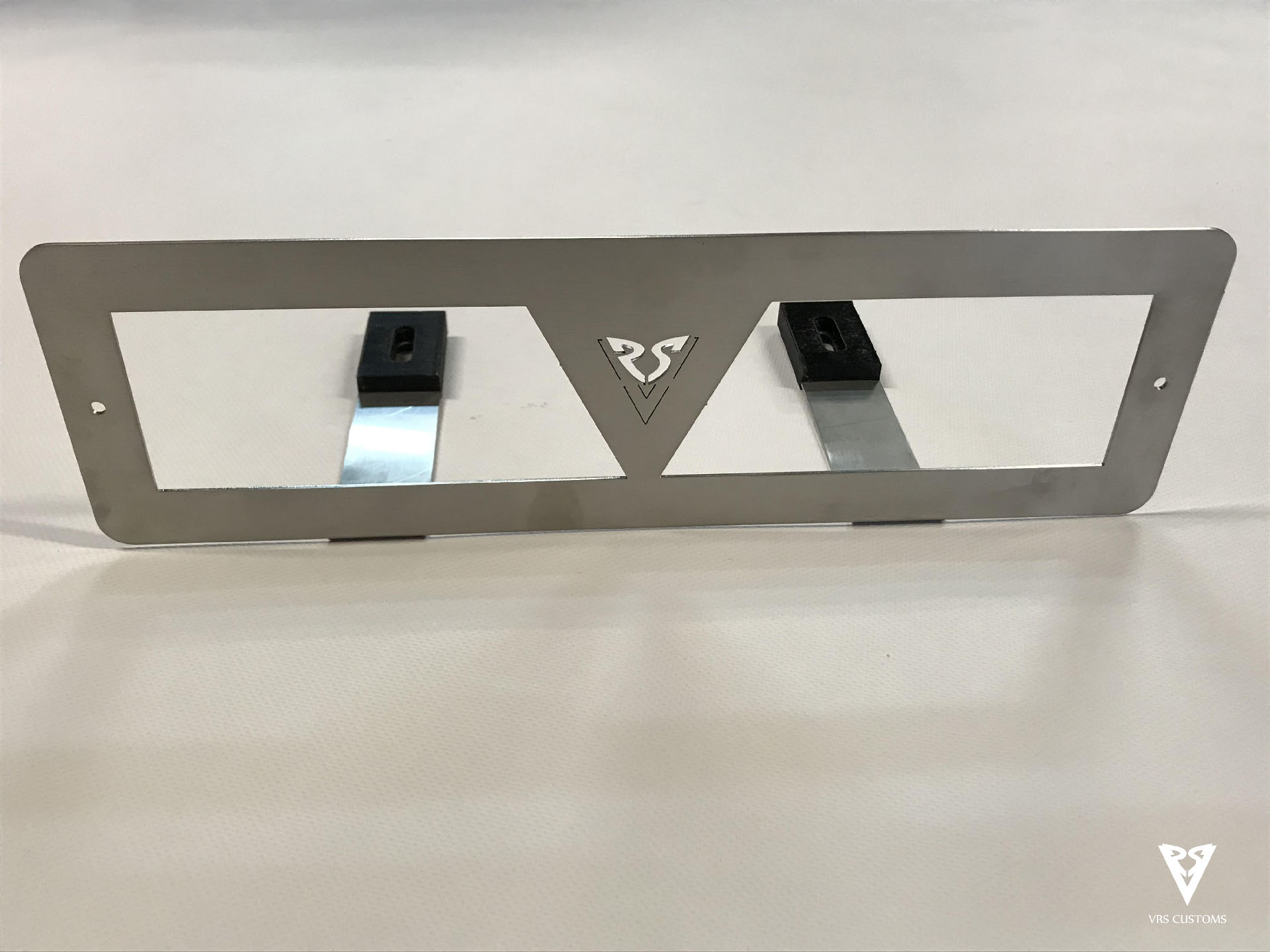 Front license plate mount for Mazda MX5 NA and NB. Made from 3mm thick laser cut stainless steel with satin finish, includes ABS anti-vibration inserts for a perfect fit.