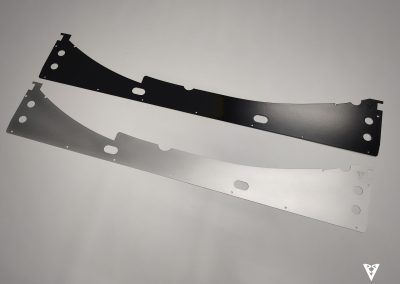 Specific wiper cowl for Mazda MX5 NA/NB. Made of 1.5mm aluminium, with satin aluminium finish or satin black powder coating, or carbon fibre of the same thickness.