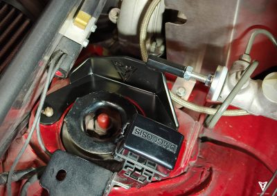 Brake Stopper para Mazda MX5 na y nb. Los cortafuegos de Miata son conocidos por flexionarse al frenar con fuerza, lo que genera una sensación de pedal suave y una potencia de frenado comprometida. El Brake Stopper al ir atornillado de forma segura en la torreta de amortiguación de fábrica, es la solución para eliminar la flexión del cortafuegos y garantizar el 100 % de su potencia de frenado.