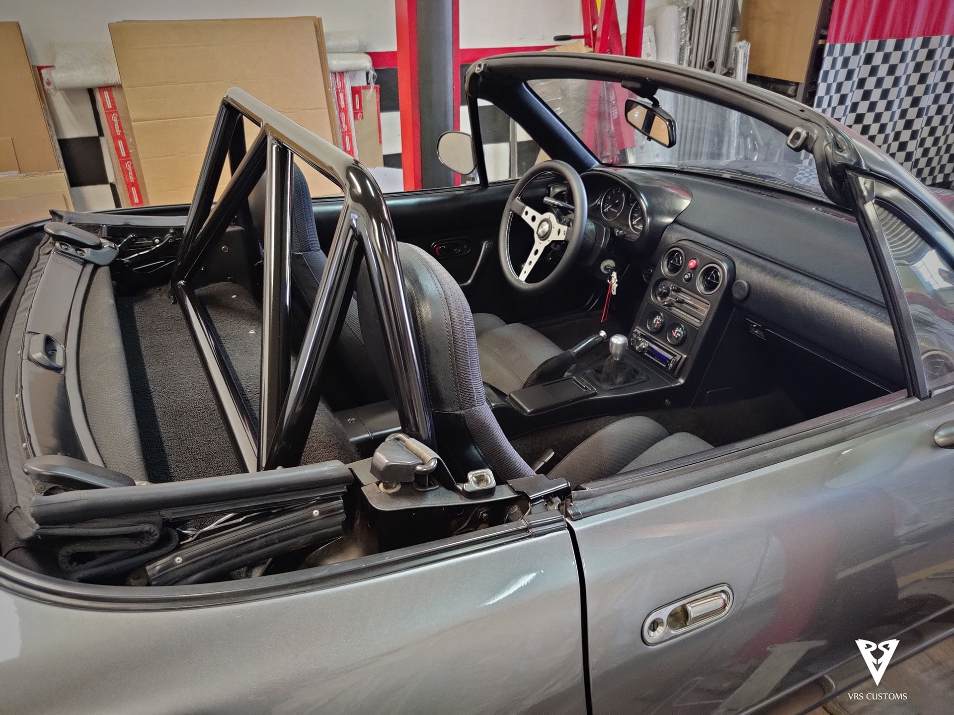 Barras antivuelco para Mazda Mx5 Na y NB, fabricadas en tubo de 40×2 y acabado en negro satinado. 6 puntos de fijación al chasis. Incluye tornillería y pletinas para su instalación.