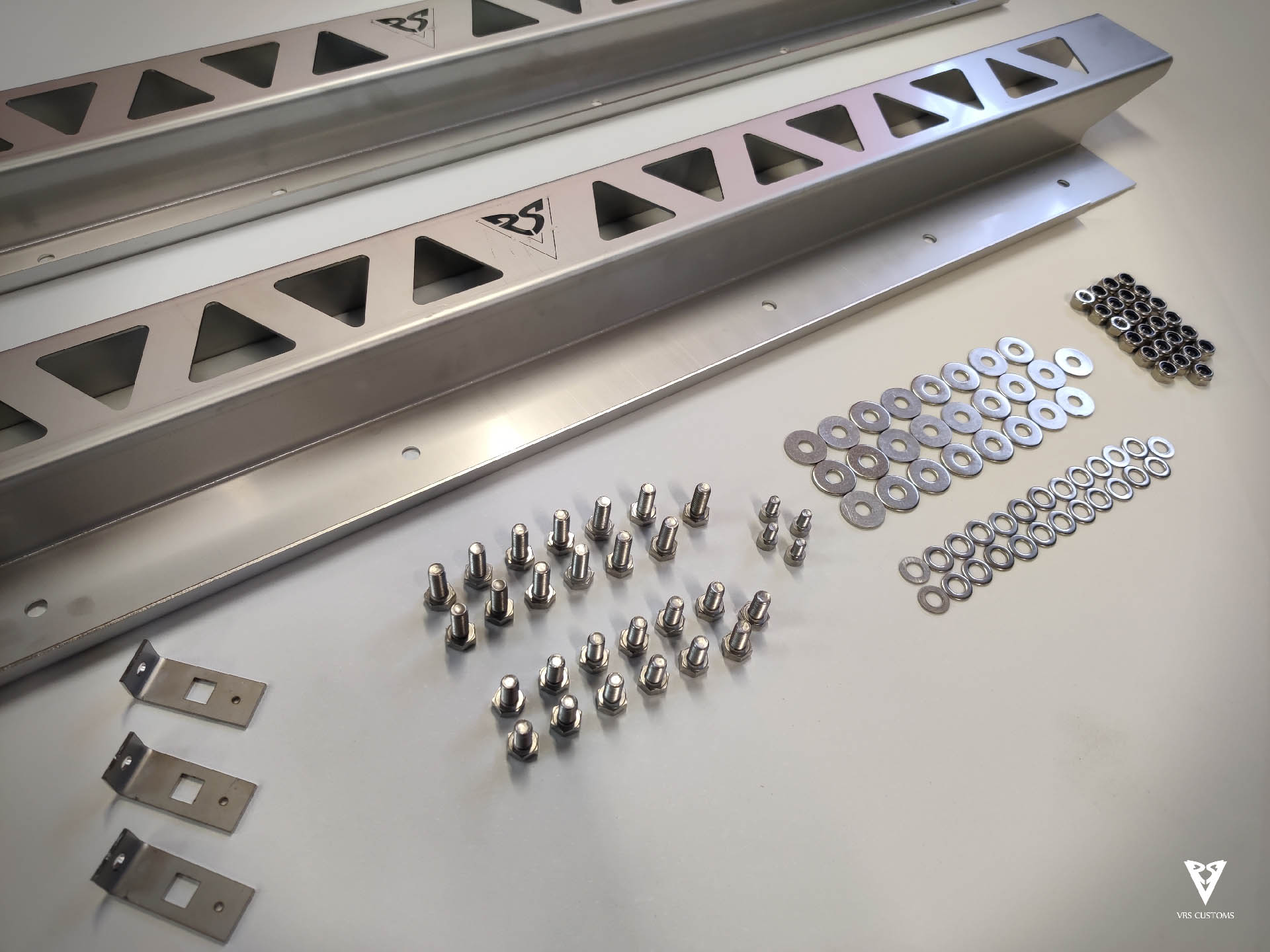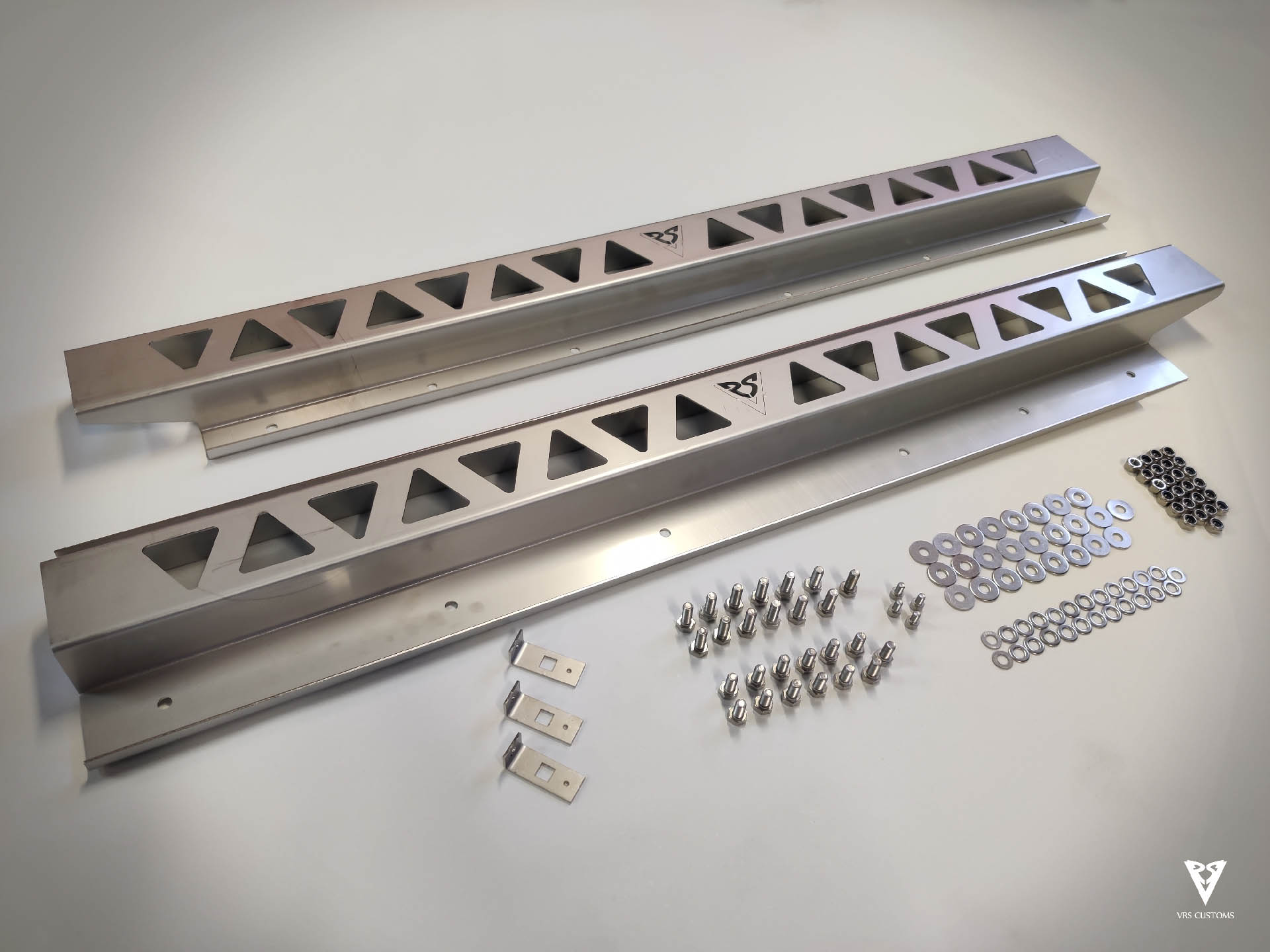 Frame Rails para Mazda MX5 NA y NB. Fabricado en acero inoxidable de 2mm de grosor cortado por láser, incluye tornillería y chapas de fijación para tubería de freno.