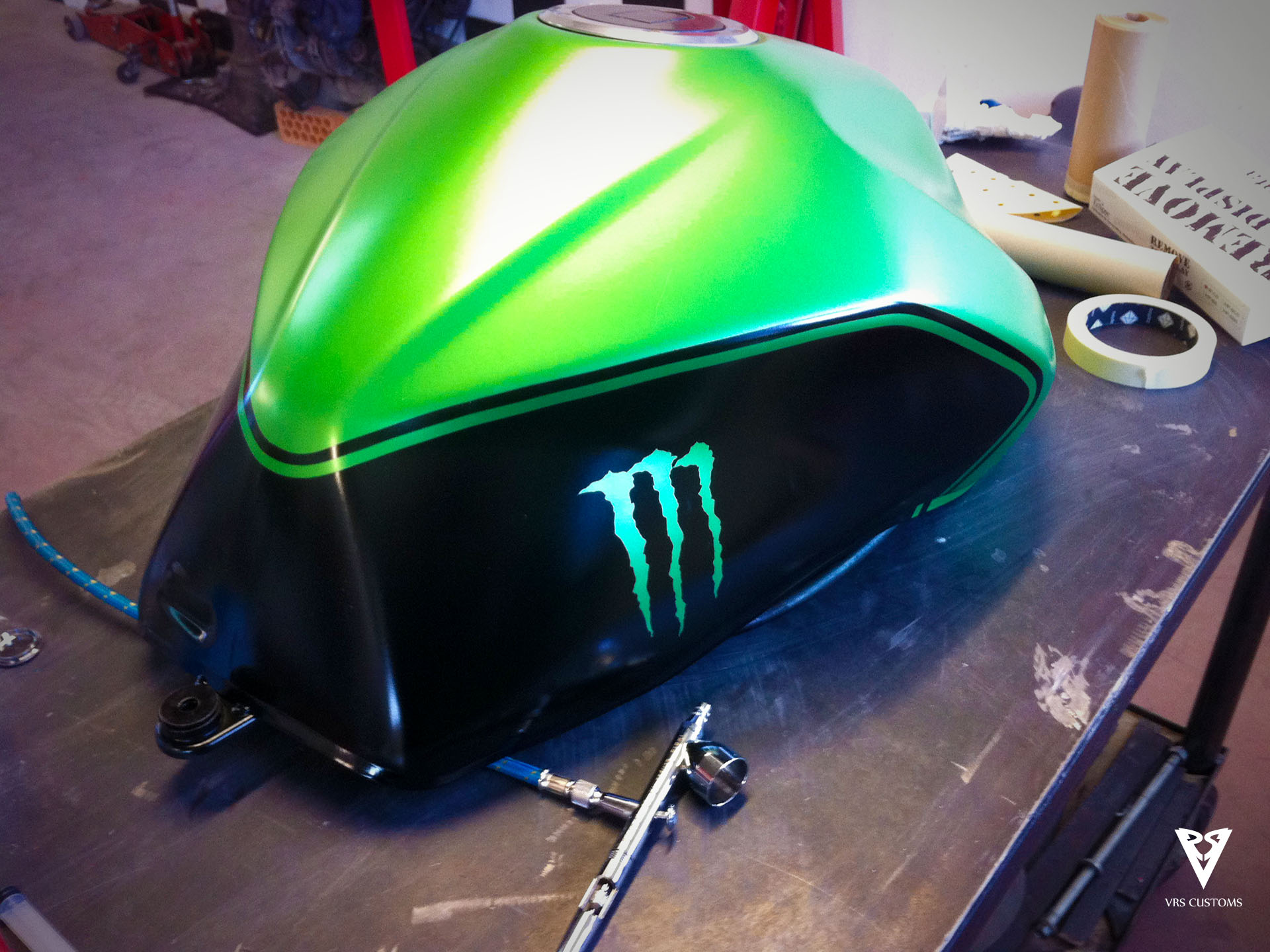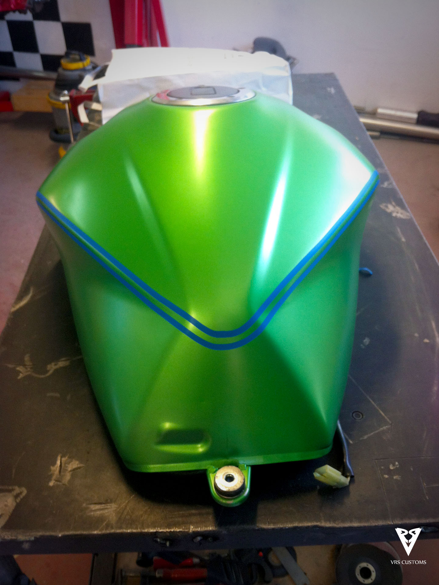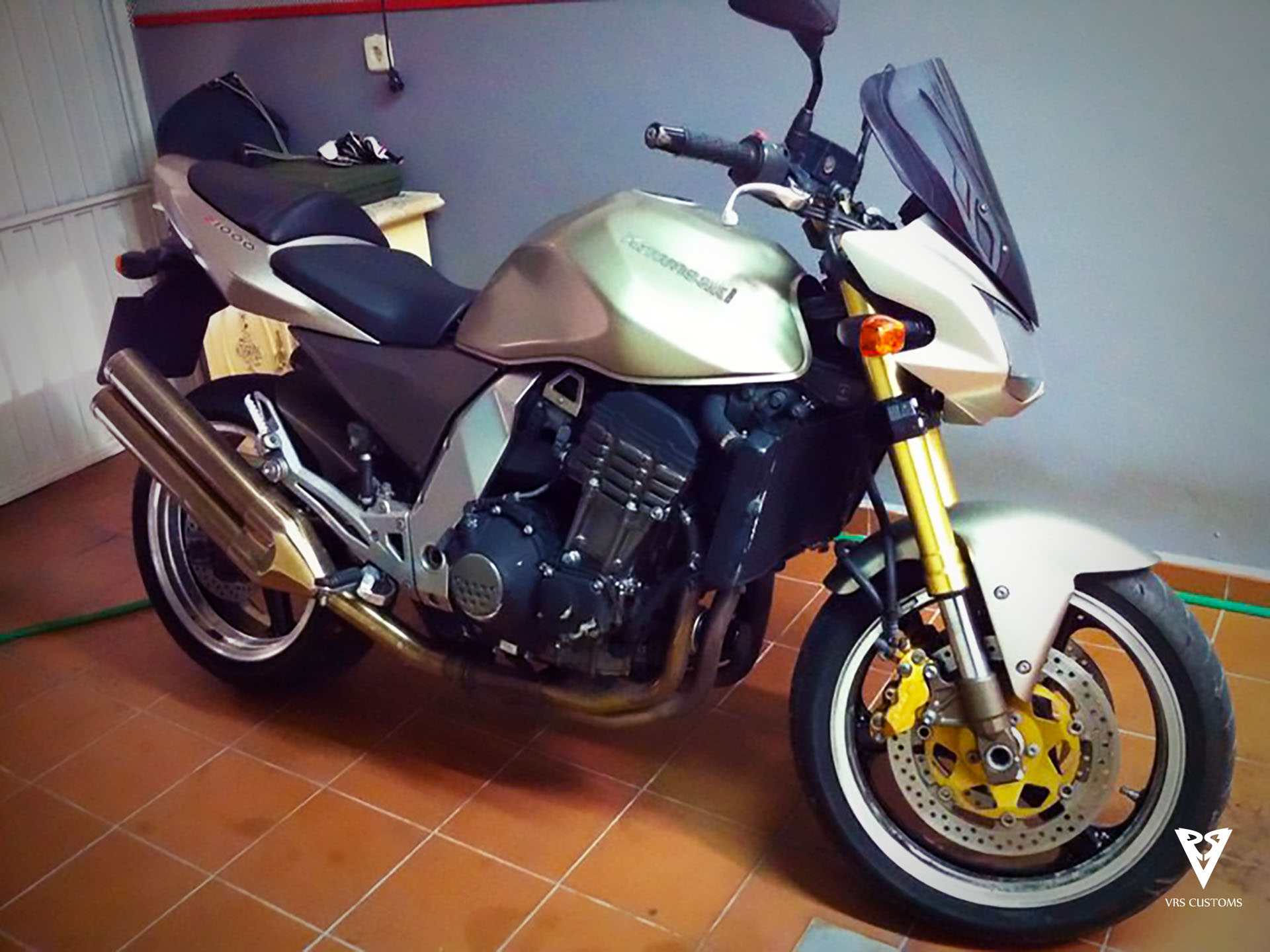 En este caso vamos a trabajar sobre una Kawasaki Z1000 a la que le queremos dar una cambio completo de imagen. Para ello usaremos una combinación de colores Verde Kawa, Negro Brillo y Negro mate para carenados y dorado claro para las llantas.